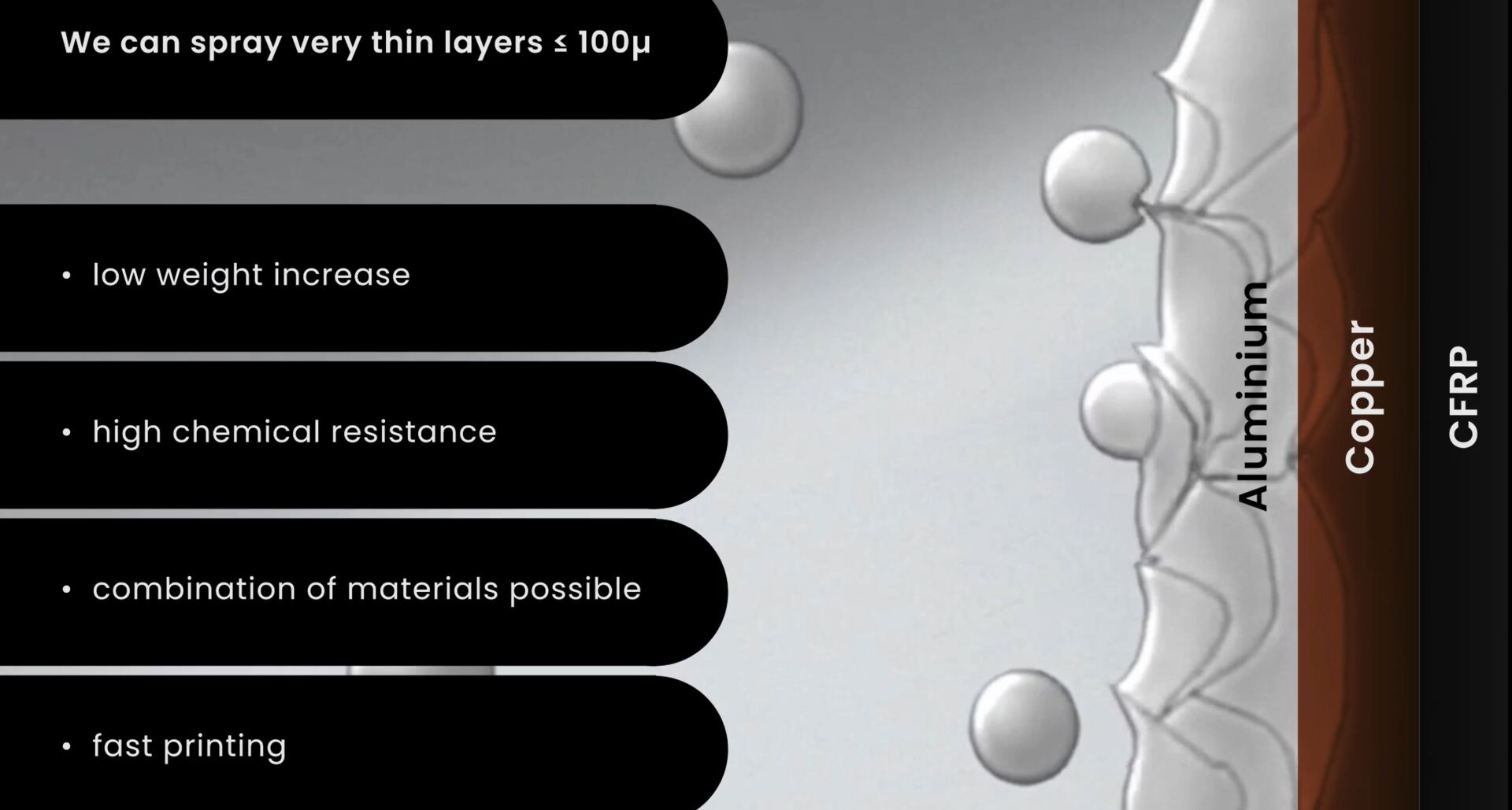 By using the cold spray technology we are able to coat the CFRP layers with alluminium alloy and other materials.